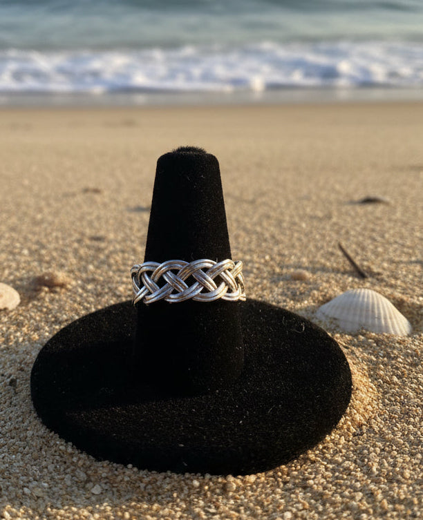 Slip on this charming 925 silver ring and let its intricate basket weave pattern steal the show. At a quarter-inch wide, it strikes the perfect balance between delicate and statement-making—just enough presence to catch the light without overwhelming your finger. A playful twist on classic elegance.