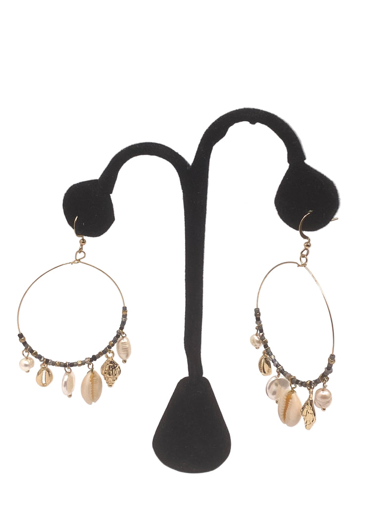 Add a splash of fun with these BoHo Gold Fashion Beaded Shell Earrings! Featuring charming beads, playful dangling shells, and delicate faux pearl touches, they measure 2.5" across for just the right pop.