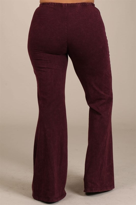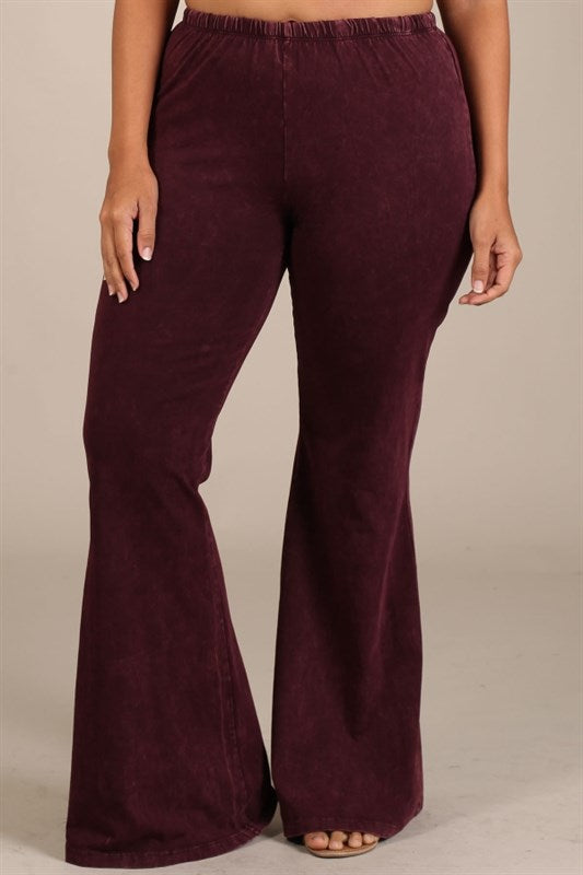 Chatoyant Plus Size Mineral Wash Bell Bottoms Burgundy