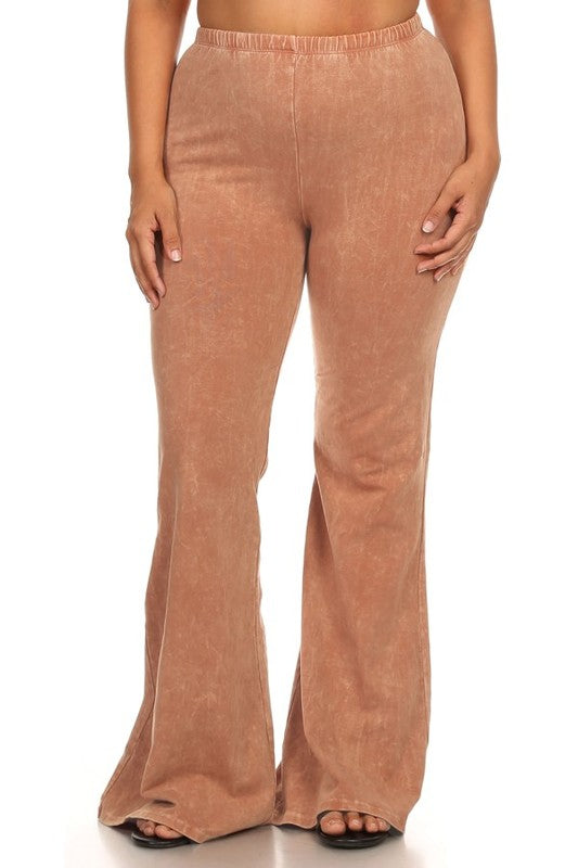 Chatoyant Plus Size Mineral Wash Bell Bottoms Camel